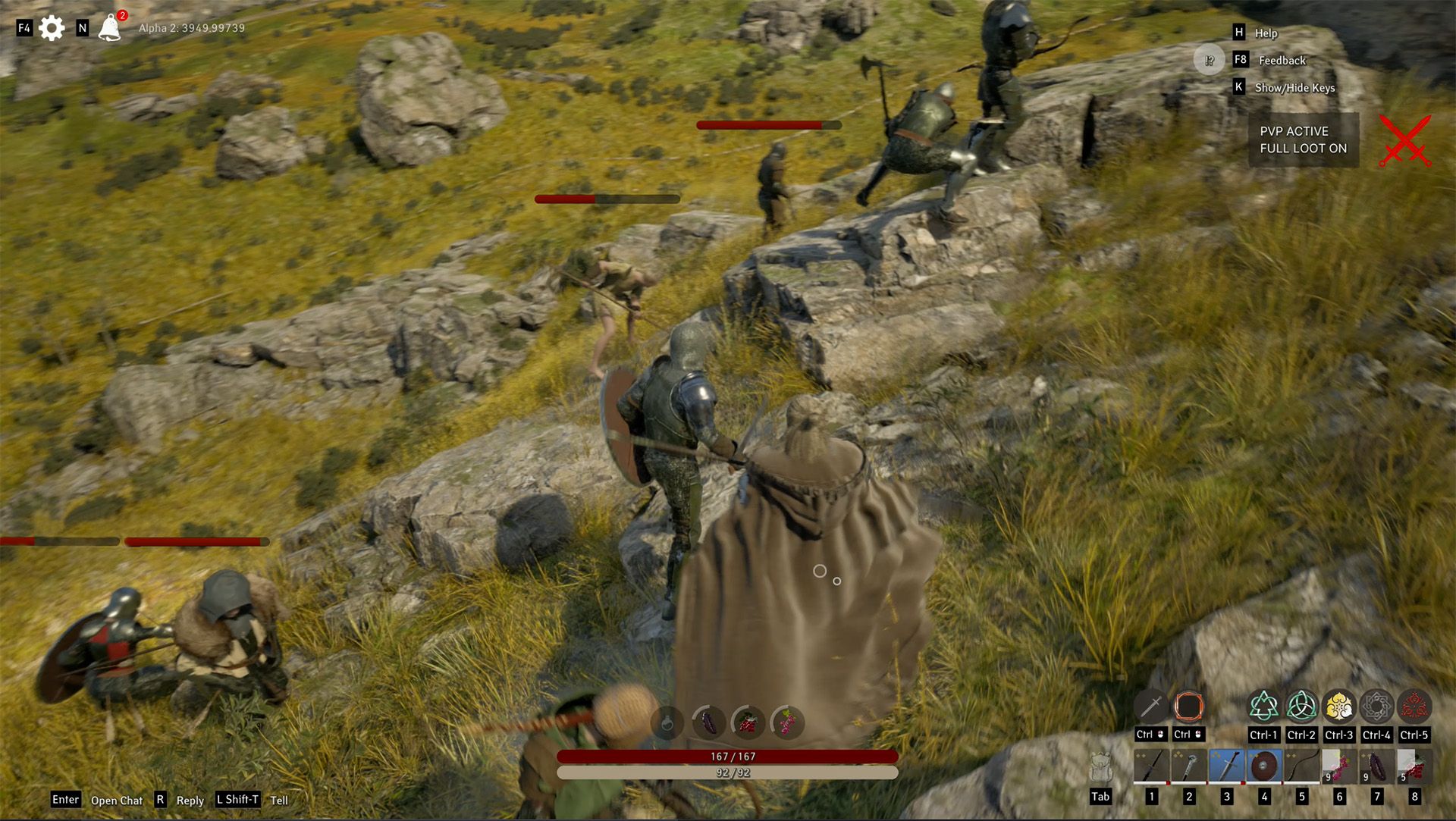 Aber wie sieht es mit der Spielbalance aus? Sollten wir zusätzliche Ressourcen hinzufügen oder würde das das Gleichgewicht zu sehr stören? Stellt euch Folgendes vor: Als Nicht-PvP-Spieler könnte es passieren, dass ihr von PvP-Enthusiasten abhängig seid, um euch bestimmte Ressourcen zu beschaffen. Umgekehrt könnten PvP-Spieler die Expertise von Handwerkern und Sammlern benötigen, um sich für den Kampf auszurüsten. Das Ganze ist ein empfindliches Gefüge aus Kooperation und Wettbewerb, bei dem auf dem Weg zum Sieg Bündnisse geschmiedet werden und zerbrechen.