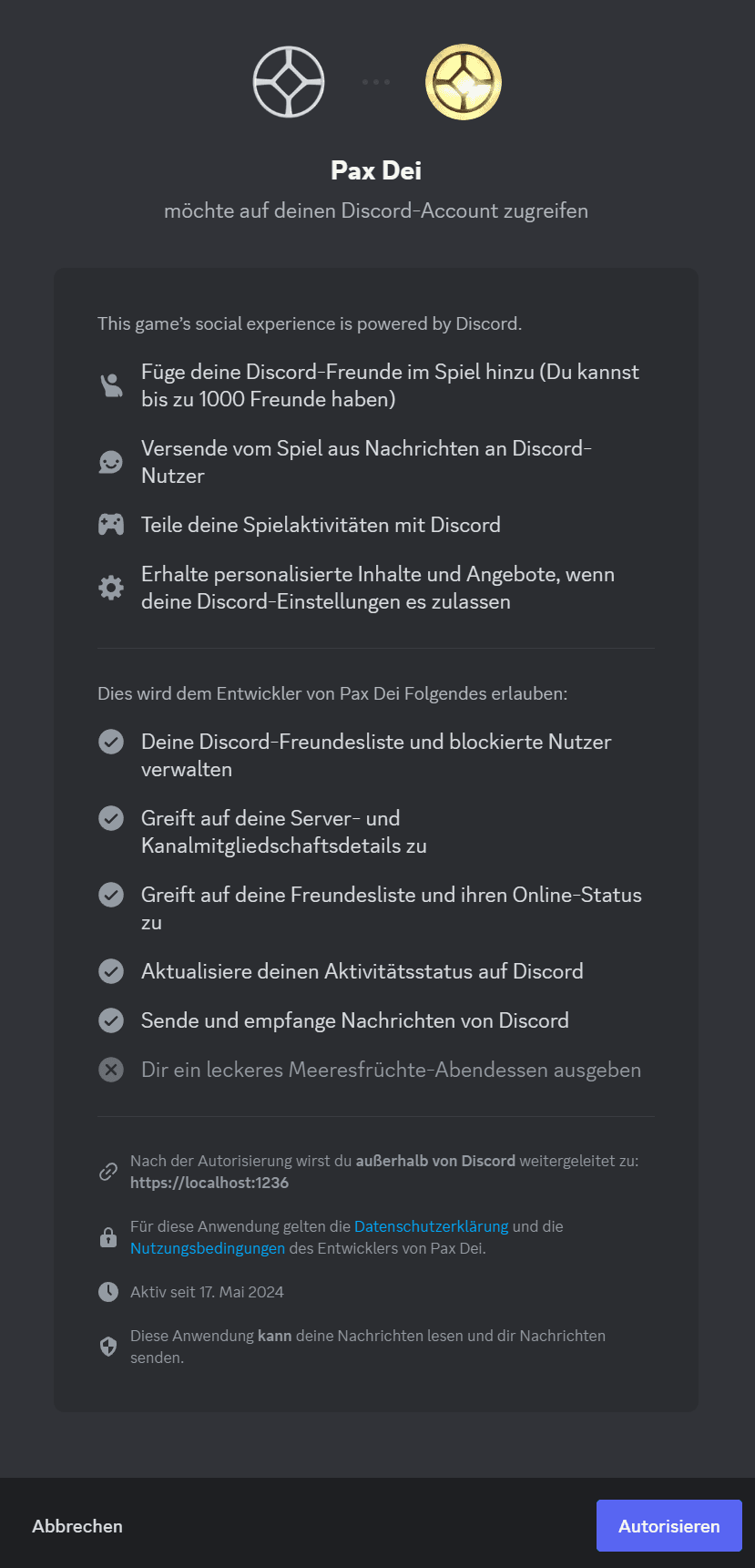 Um den Chat außerhalb des Spiels freizuschalten, musst du Pax Dei Zugriff auf dein Discord-Profil gewähren. Dieser Prozess wird während der Verknüpfung beschrieben.