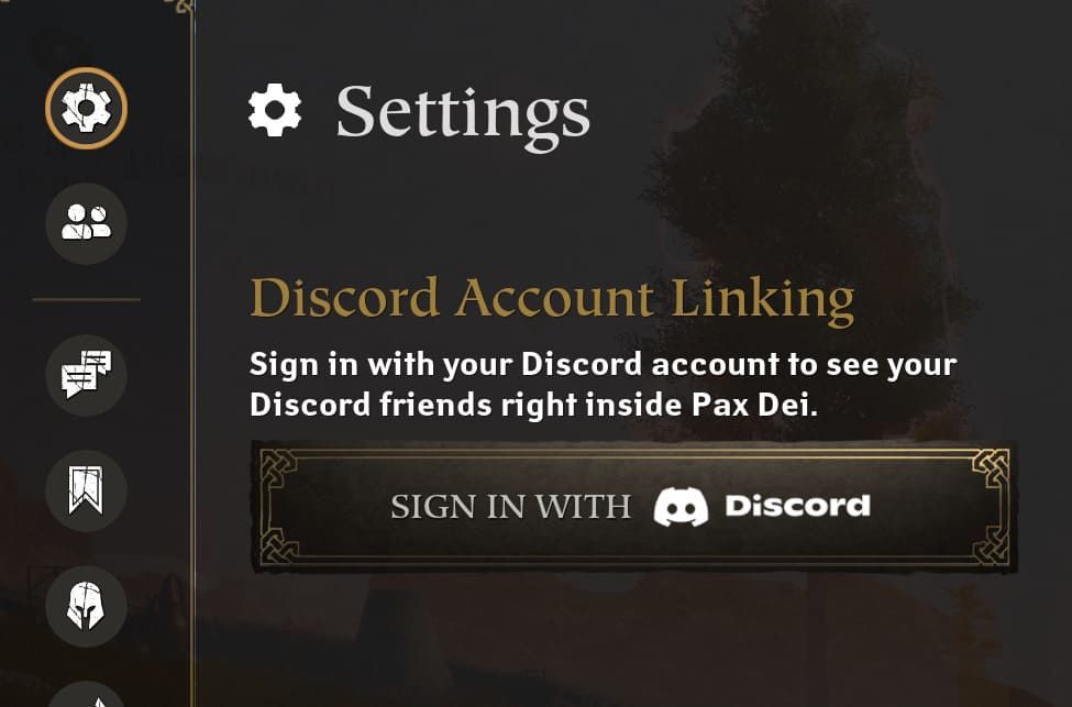 Wenn du dich nach der Wartung einloggst, wird dir im Chatfenster angeboten, deinen Discord-Account zu verknüpfen. Nachdem du deine Account-Daten eingegeben und den Bedingungen zugestimmt hast, erscheinen deine Freunde aus Pax Dei in deiner Discord-Freundesliste und du kannst ihnen sowohl in der Discord-App als auch im Spiel Nachrichten schicken.
