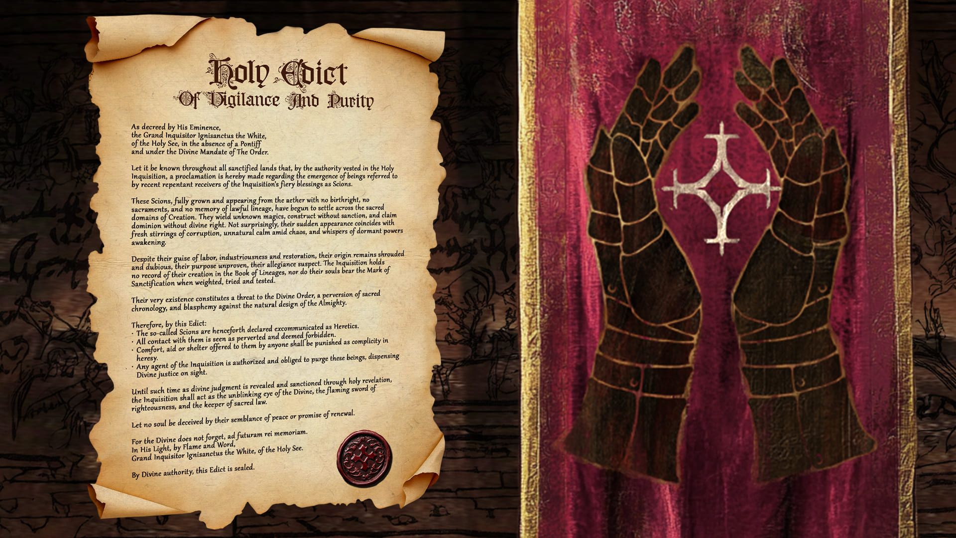 Let it be known throughout all sanctified lands that, by the authority vested in the Holy Inquisition, a proclamation is hereby made regarding the emergence of beings referred to by recent repentant receivers of the Inquisition's fiery blessings as Scions.