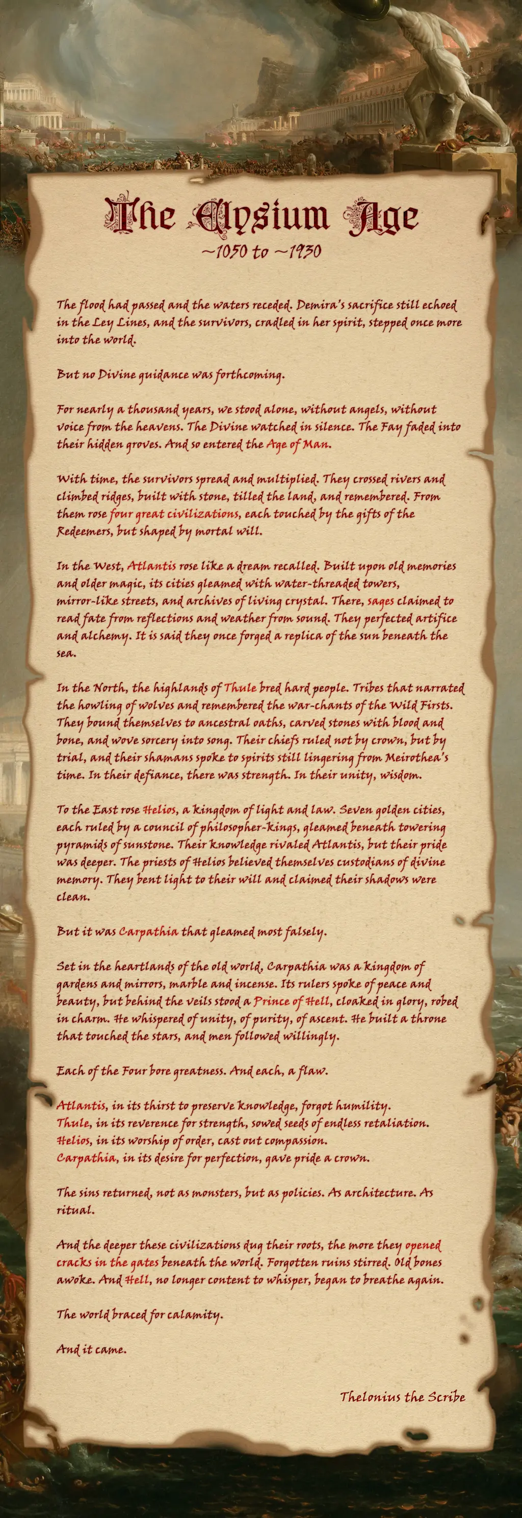 For nearly a thousand years, we stood alone, without angels, without voice from the heavens. The Divine watched in silence. The Fay faded into their hidden groves. And so entered the Age of Man.