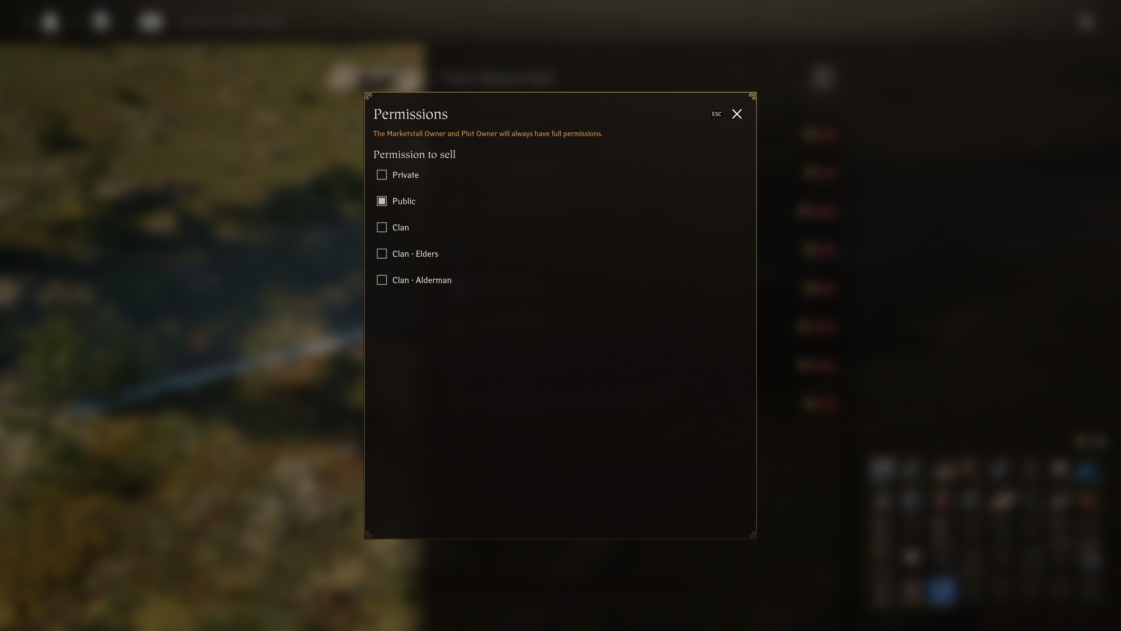 To add a personal touch to trading, you can set permissions on your stall. Decide who can place sell orders, from limiting access to clan members to opening up sales to the entire player base. This gives you the freedom to manage exclusive trade relationships and craft a niche marketplace.
