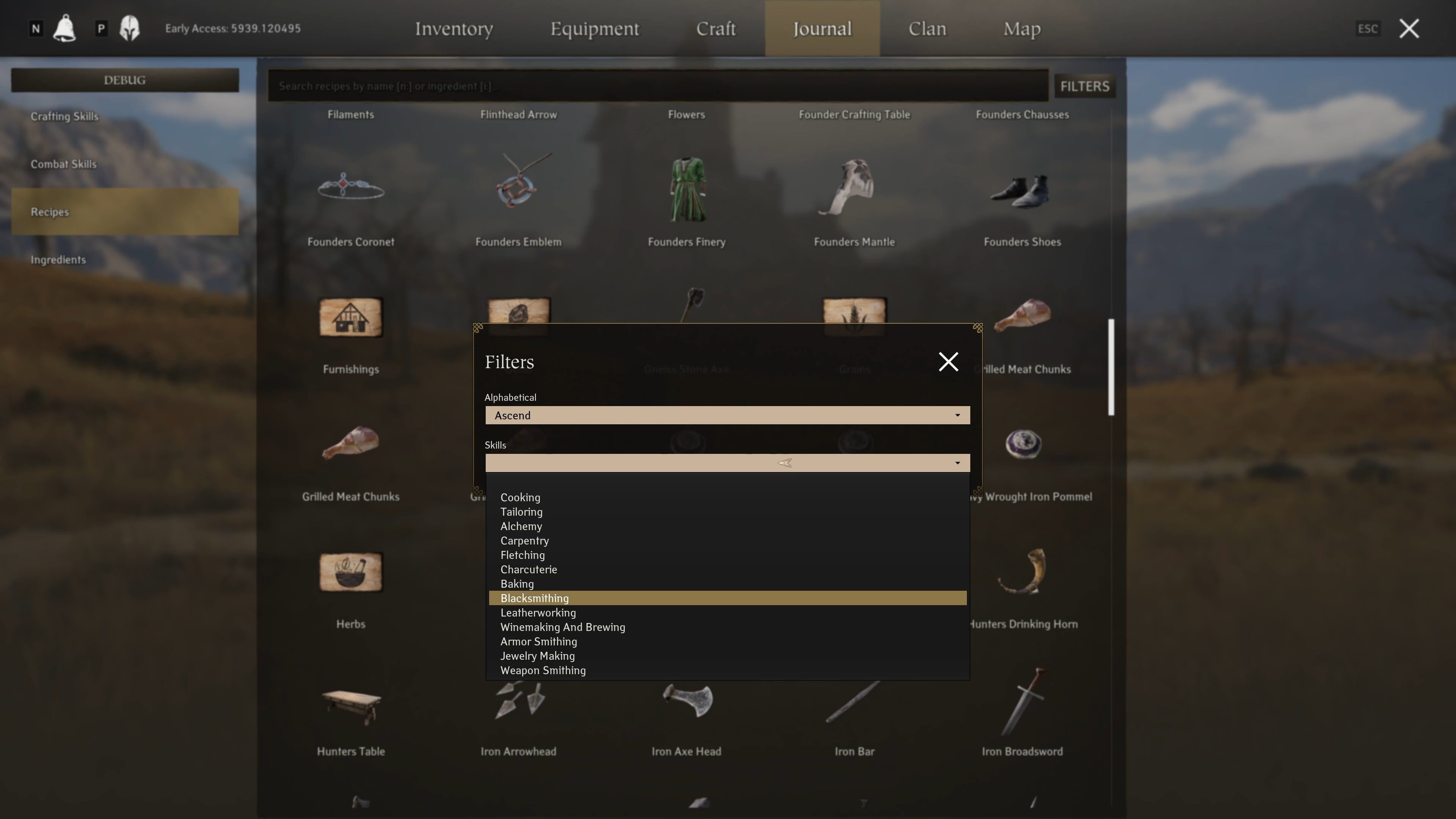- Unlocked Recipe Tracking: The Journal now lists all recipes your character has unlocked. This makes it easier to set crafting goals and track your progress.