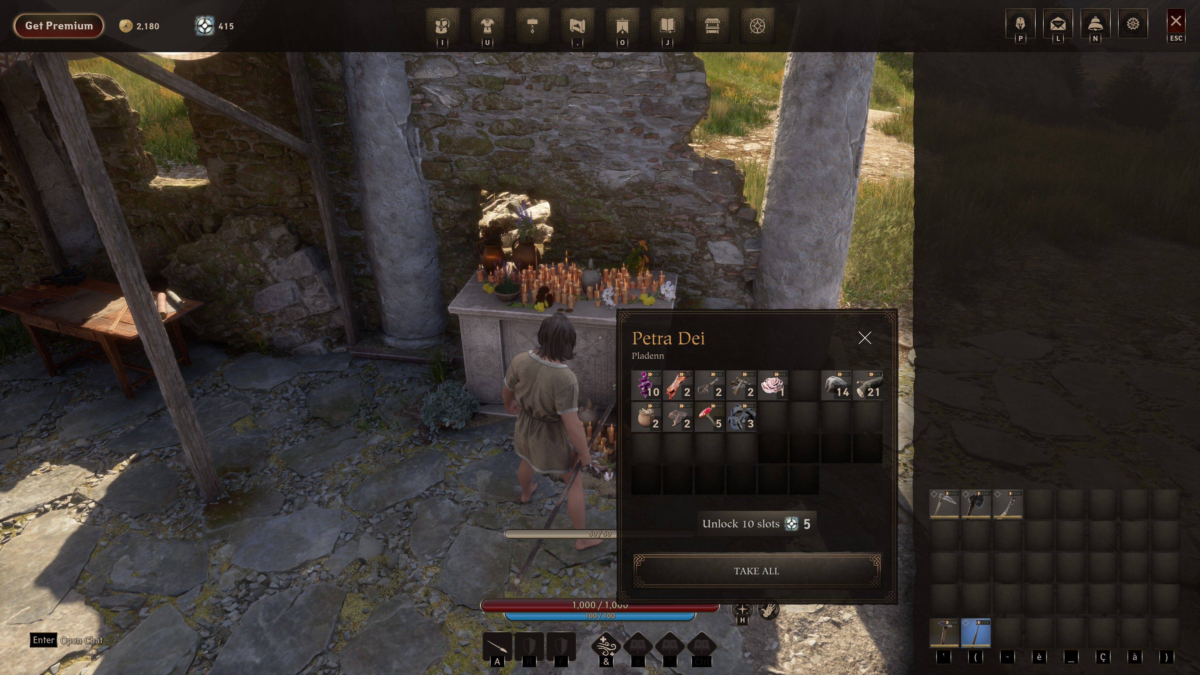 Nous ajoutons également un espace de stockage personnel au Petrae Dei afin que vous puissiez vous familiariser avec l’expérience sans avoir à vous abonner. Chaque Petra Dei disposera de son propre espace de stockage qui servira d’espace de rangement privé pour chaque joueur. Chaque unité de stockage de Petra Dei comprend initialement 20 emplacements et peut être étendue à un maximum de 80 emplacements, avec quelques offrandes de Grâce.