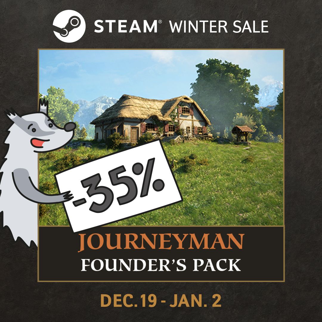 Last but not least, Pax Dei will be discounted on Steam for the Winter Sale (starting December 19th at 6pm UTC and lasting until January 2nd). Get your friends on board with a 35% discount on the Journeyman pack and a 20% discount on all DLCs!